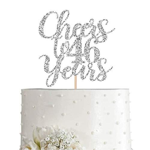 46 Silver Glitter Happy 46th Birthday Cake Topper, Cheers to 46 Years Party Decorations, Supplies, cake topper